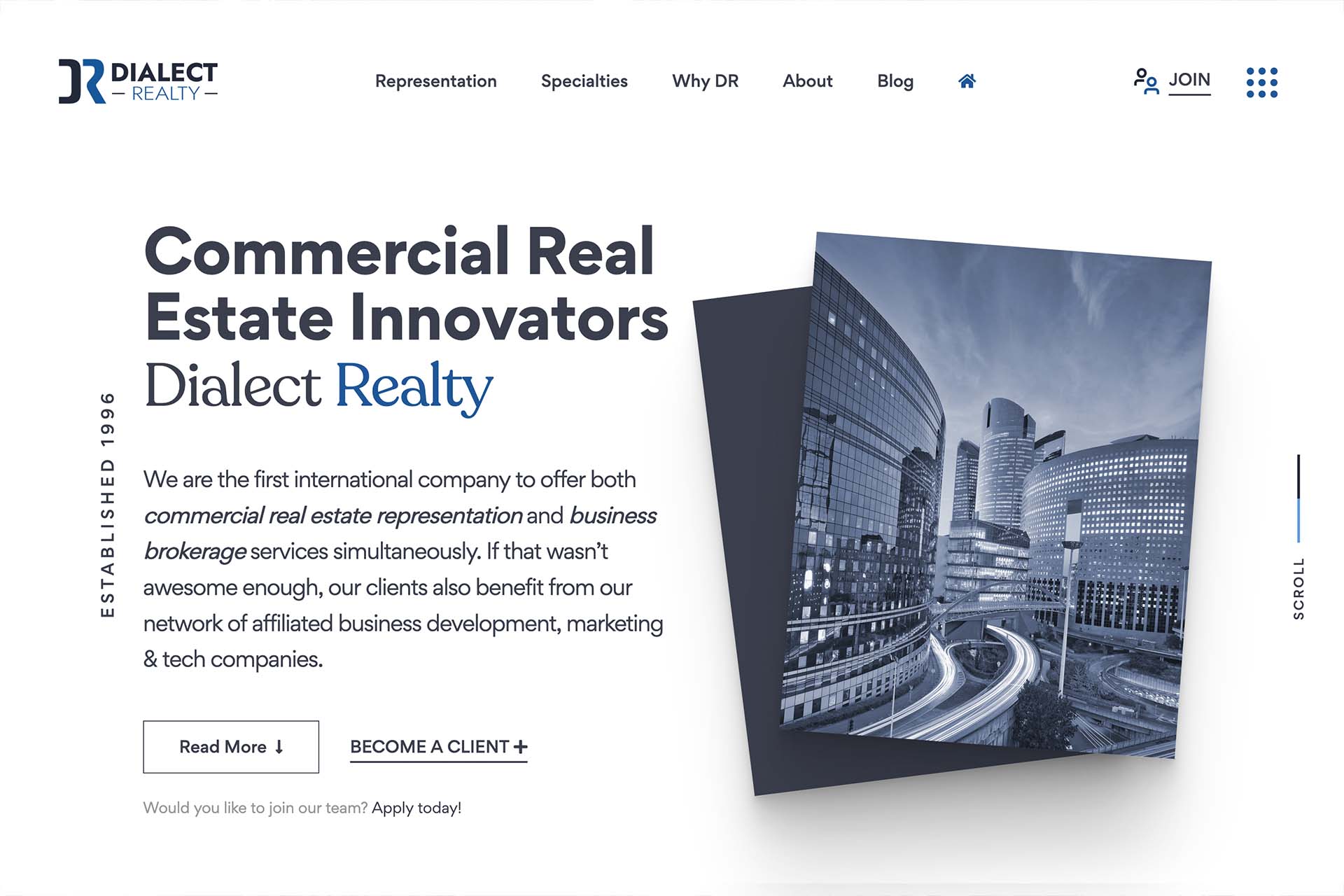 Dialect Realty is the first international company to offer both commercial real estate representation and business brokerage services, which enable their licensed professionals to represent buyers, sellers, and investors in selling a business and commercial property simultaneously. If that wasn’t awesome enough, clients of Dialect Realty also get their businesses ahead by benefitting from the services provided by our network of affiliated business development, marketing & tech companies.